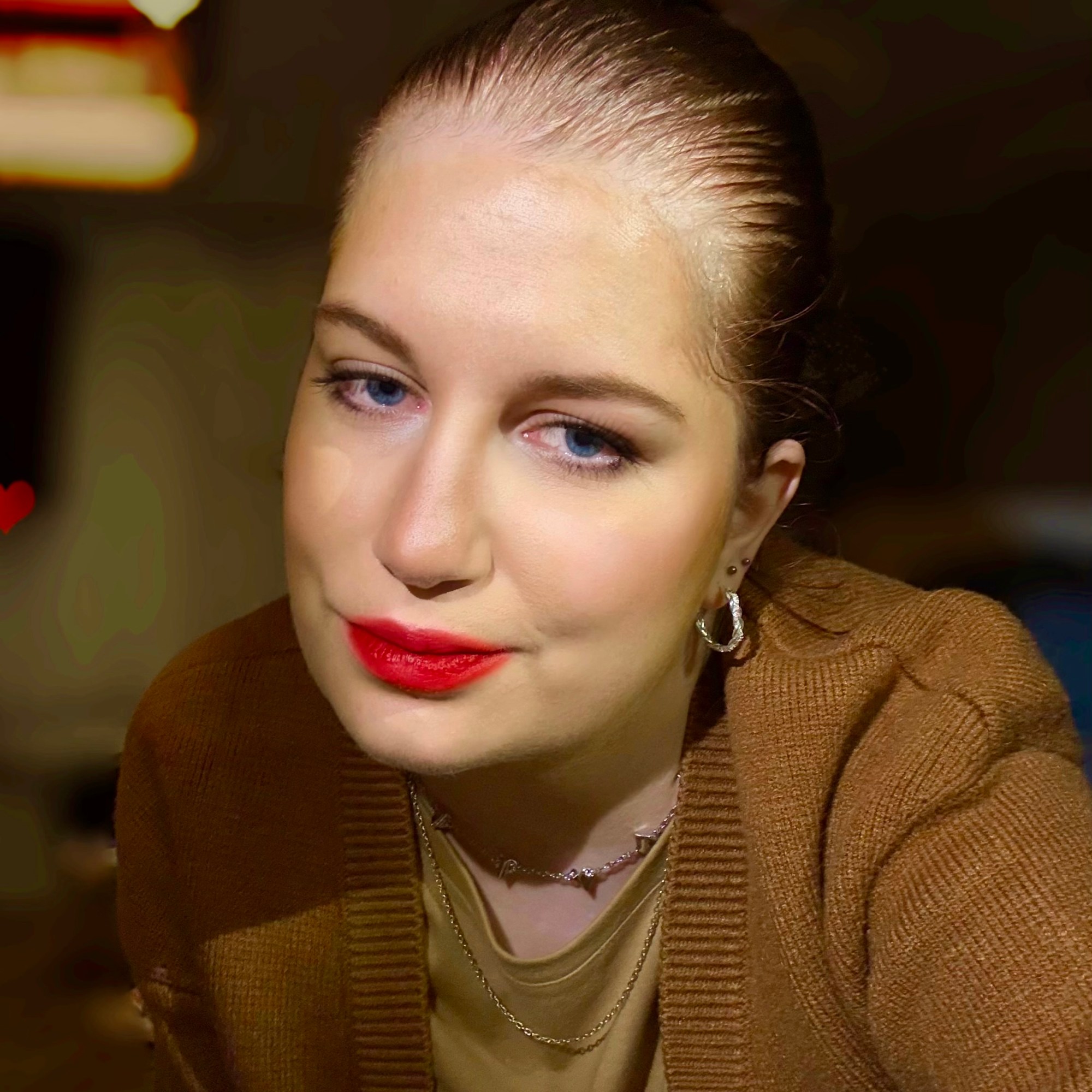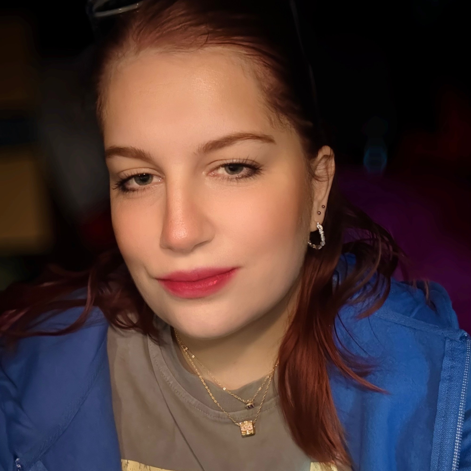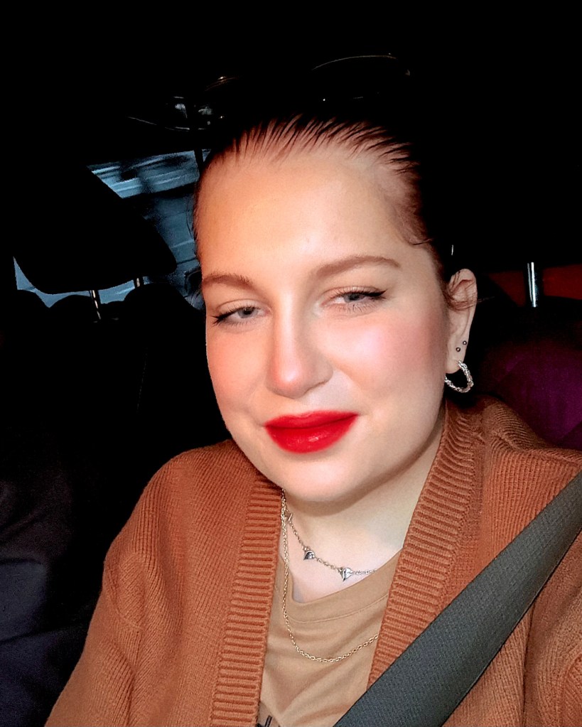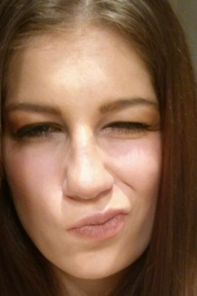Začátek roku 2014 (krátce 19 let) – dělala jsem si tenkrát velmi silný makeup na ples, protože jsem byla velmi silně nachcípaná a bylo to na mně velmi vidět, proto jsem se na sebe tak šklebila v zrcadle – kolik toho makeup snese:
