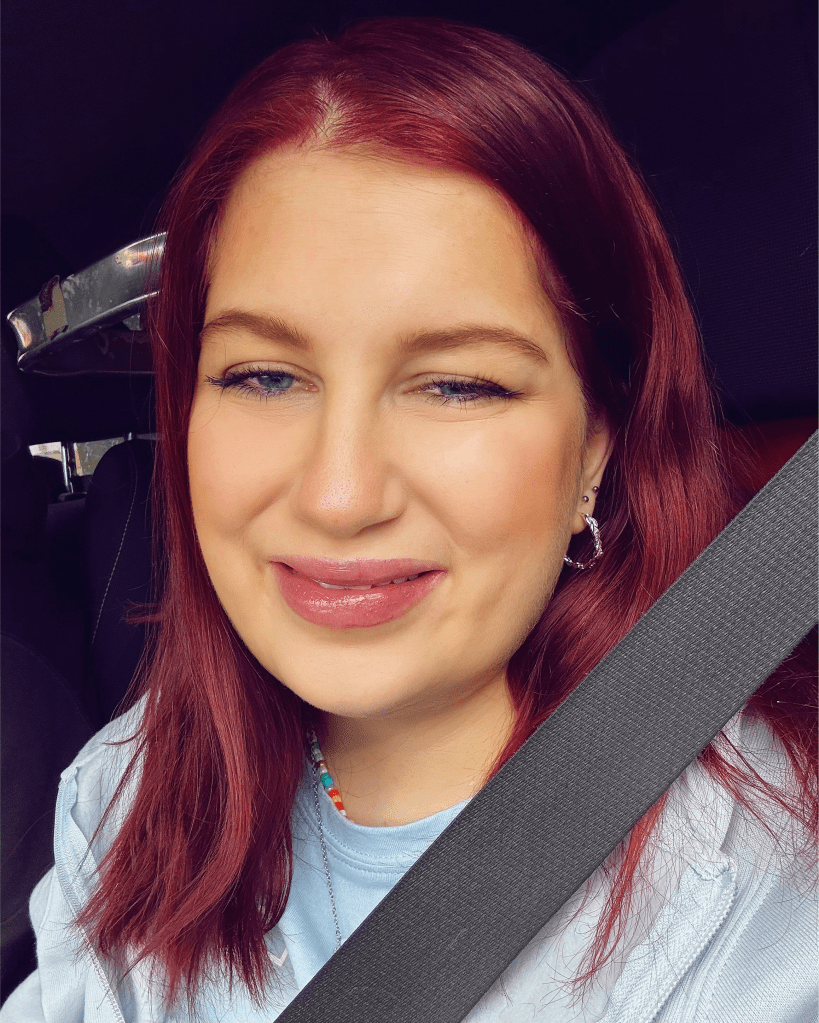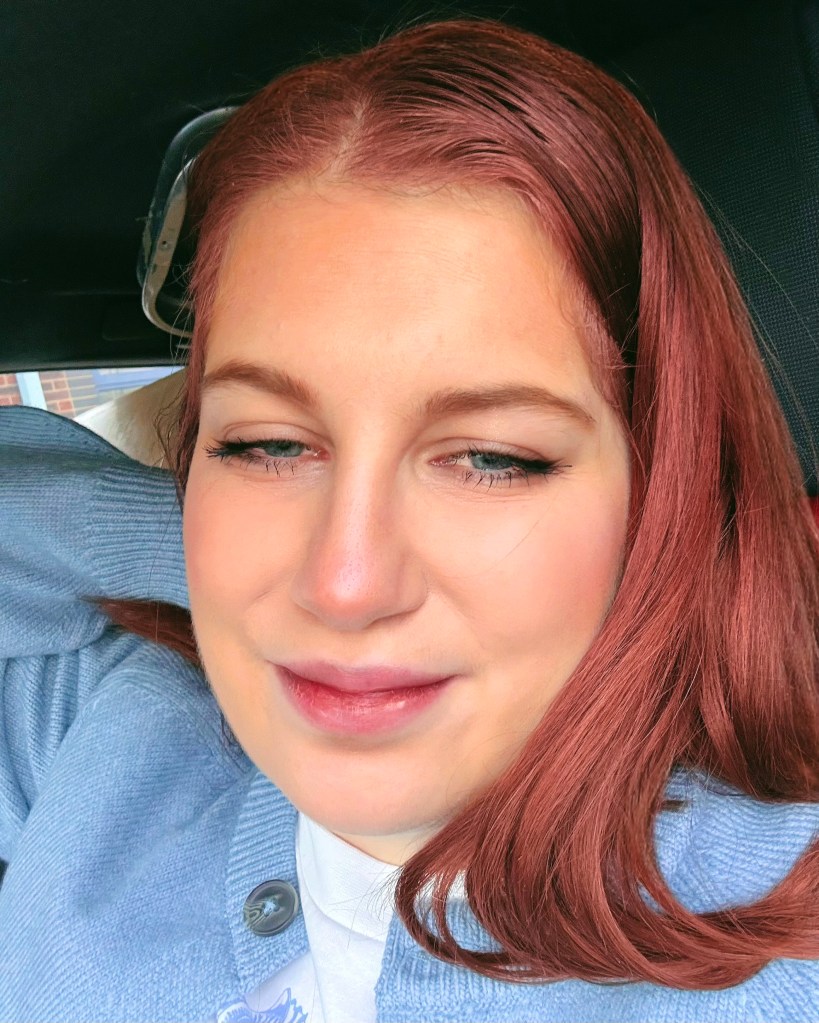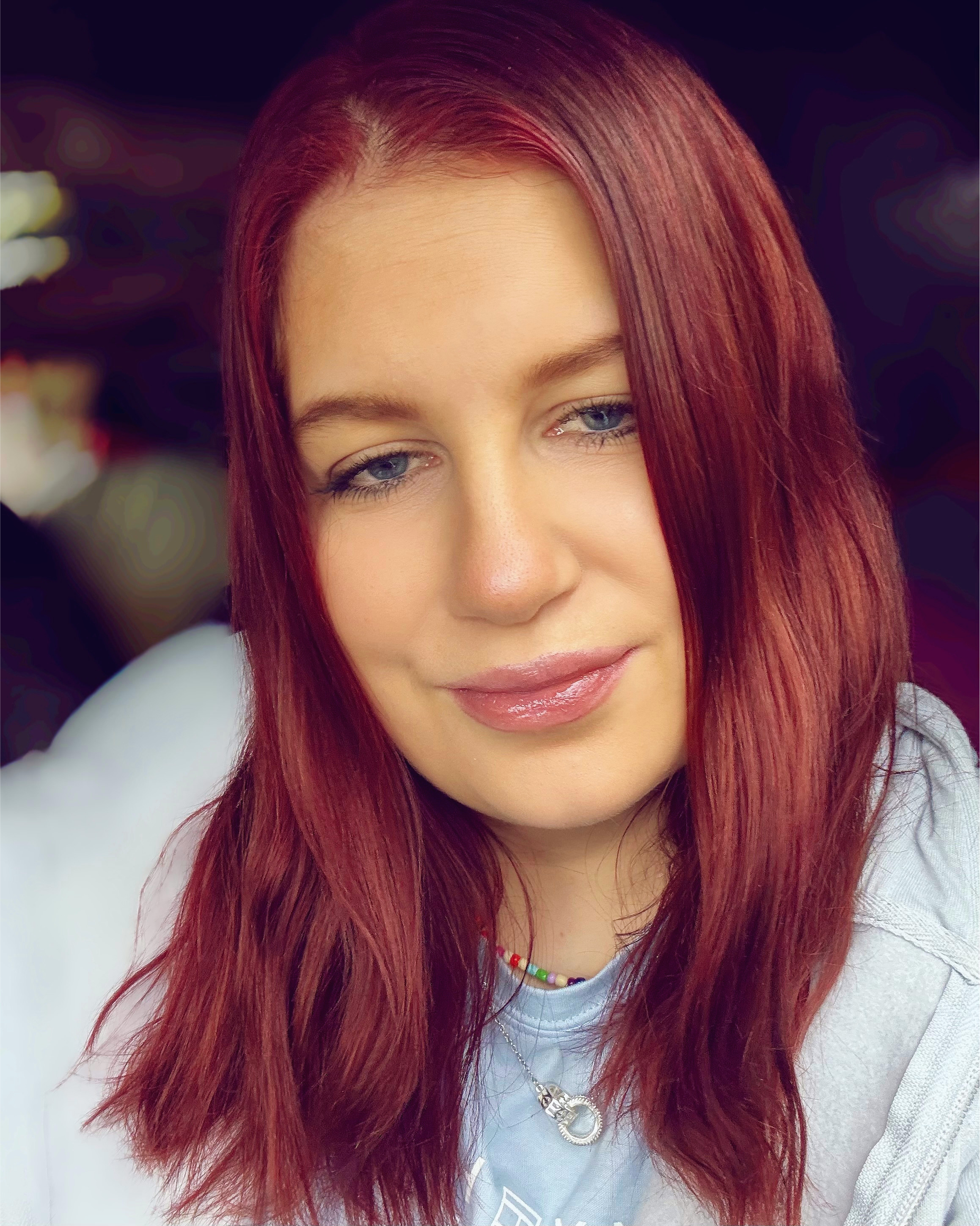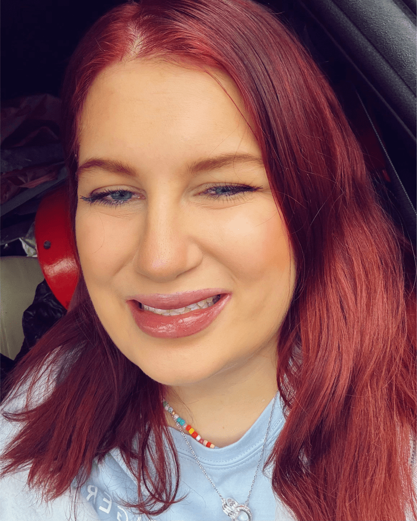 Začátek roku 2014 (krátce 19 let) – dělala jsem si tenkrát velmi silný makeup na ples, protože jsem byla velmi silně nachcípaná a bylo to na mně velmi vidět, proto jsem se na sebe tak šklebila v zrcadle – kolik toho makeup snese: